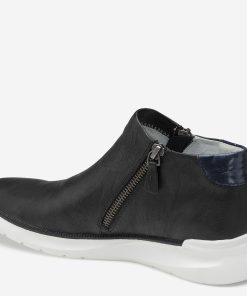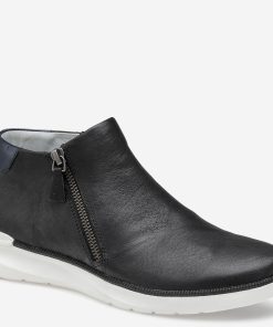 Johnston & Murphy Emery Zip Bootie Black Italian Washed Sheepskin | Womens Boots & Booties