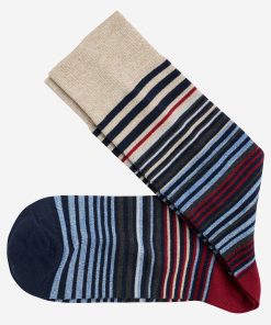 Johnston & Murphy Striped Dress Socks Navy/Burgundy Heathered Multi Stripe | Mens Socks