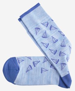 Johnston & Murphy Space Dyed Socks Light Blue Sailboats | Mens Socks