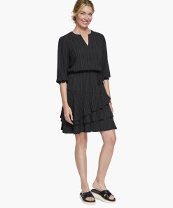 Johnston & Murphy Dobby Tiered Dress Black | Womens Dresses