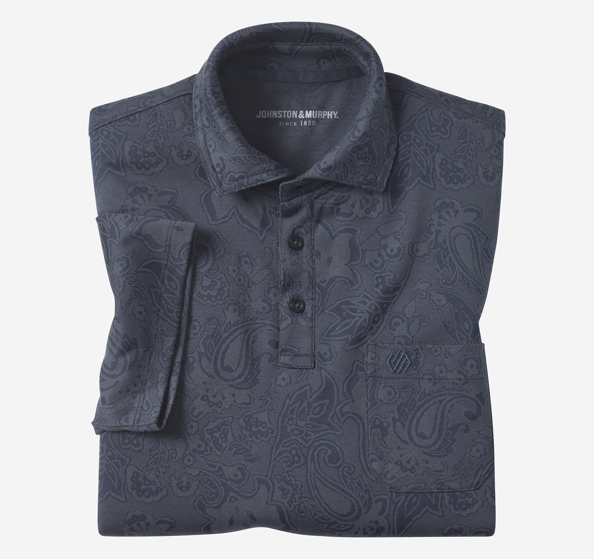 Johnston & Murphy Jacquard Polo Navy Paisley | Mens Short-Sleeve Shirts
