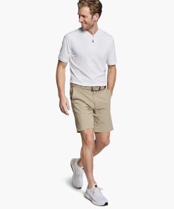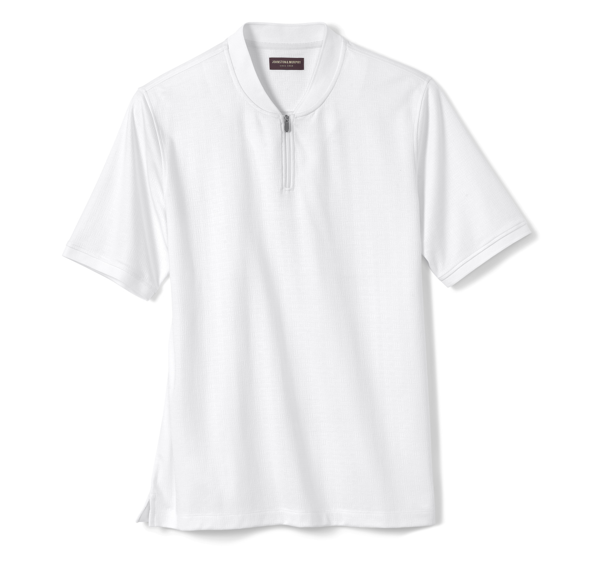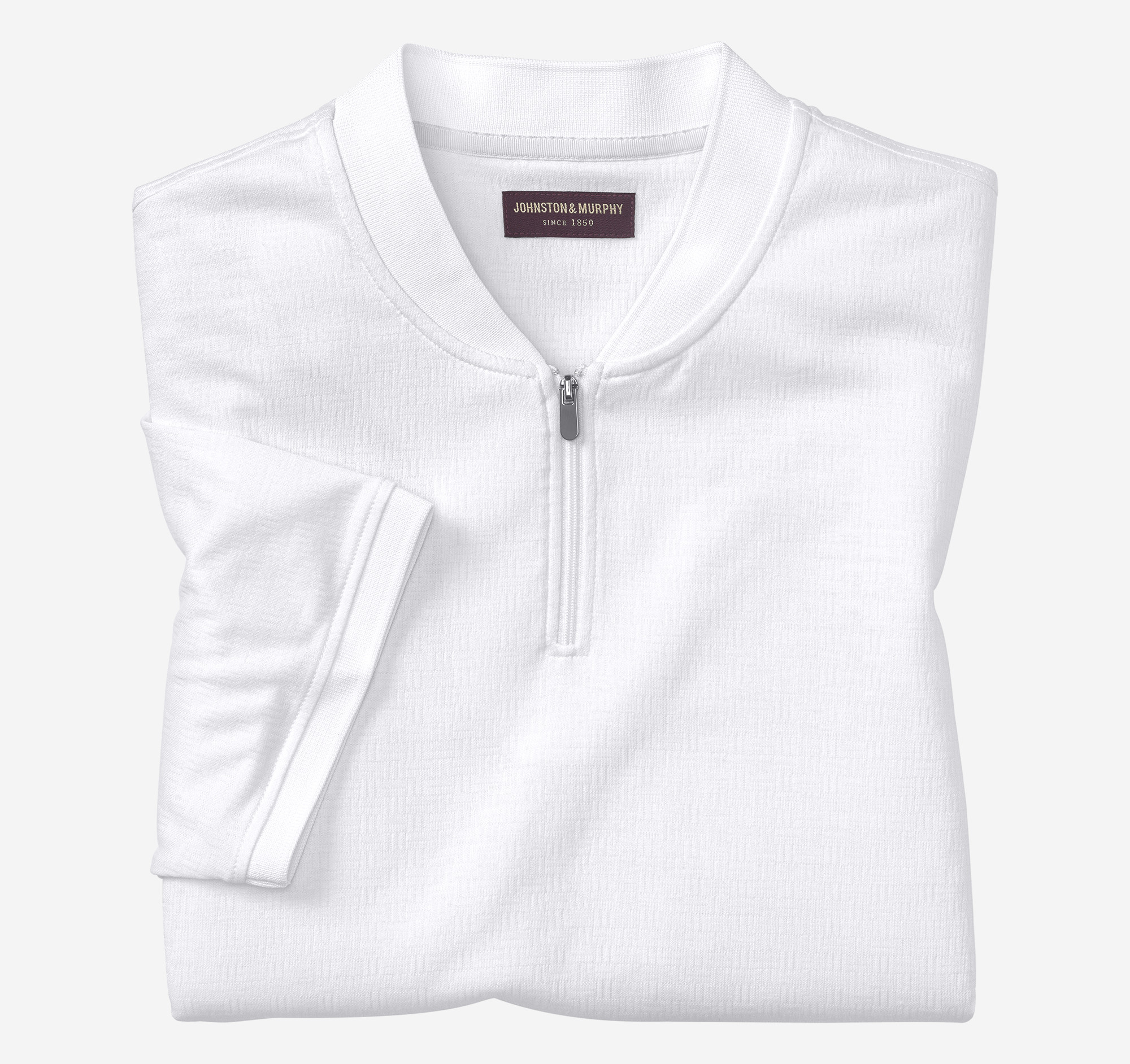 Johnston & Murphy Jacquard Zip Polo White | Mens Short-Sleeve Shirts