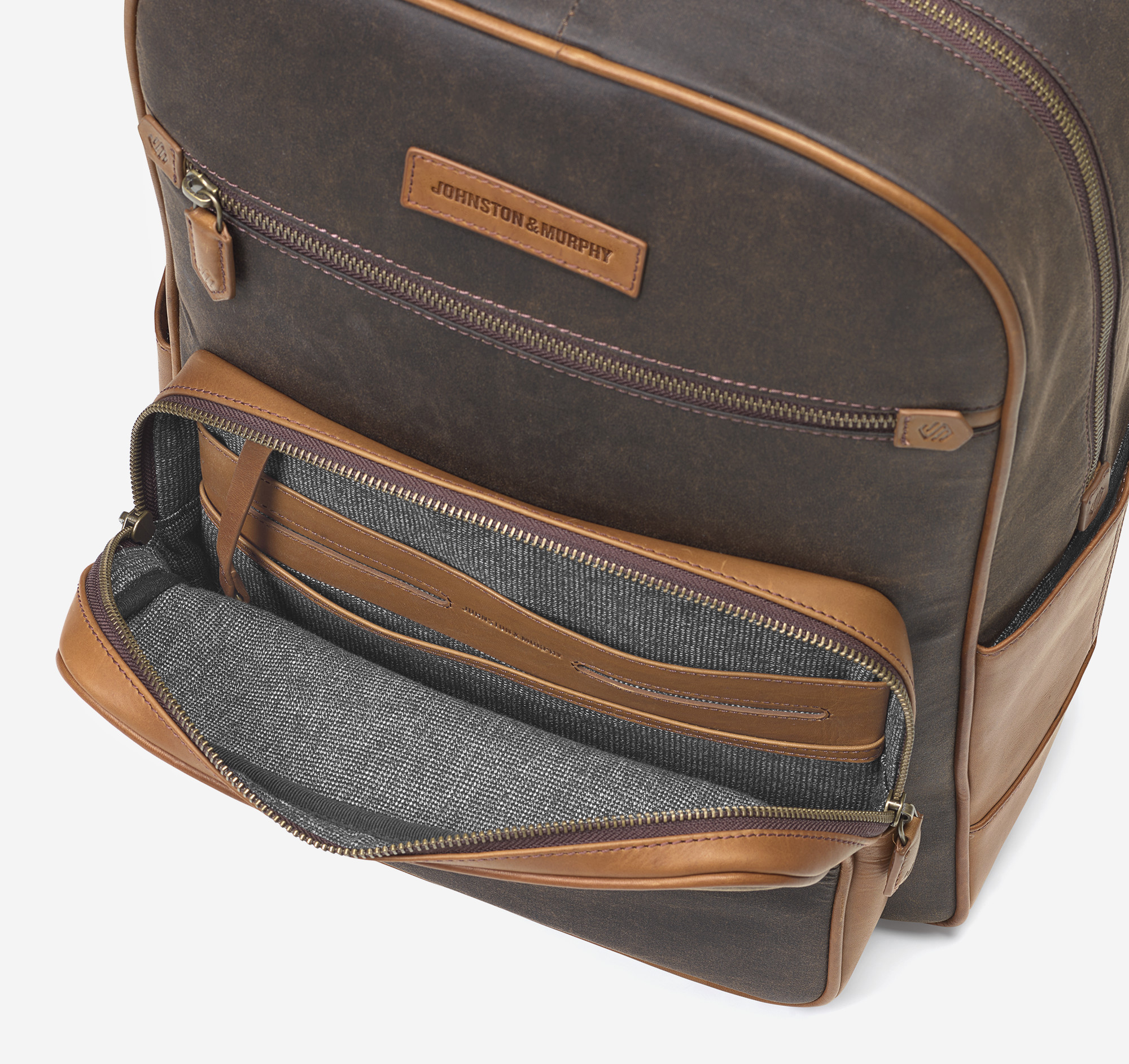 Johnston & Murphy Rhodes Backpack Brown Antique Cotton/Tan Full Grain | Mens Backpacks & Briefcases