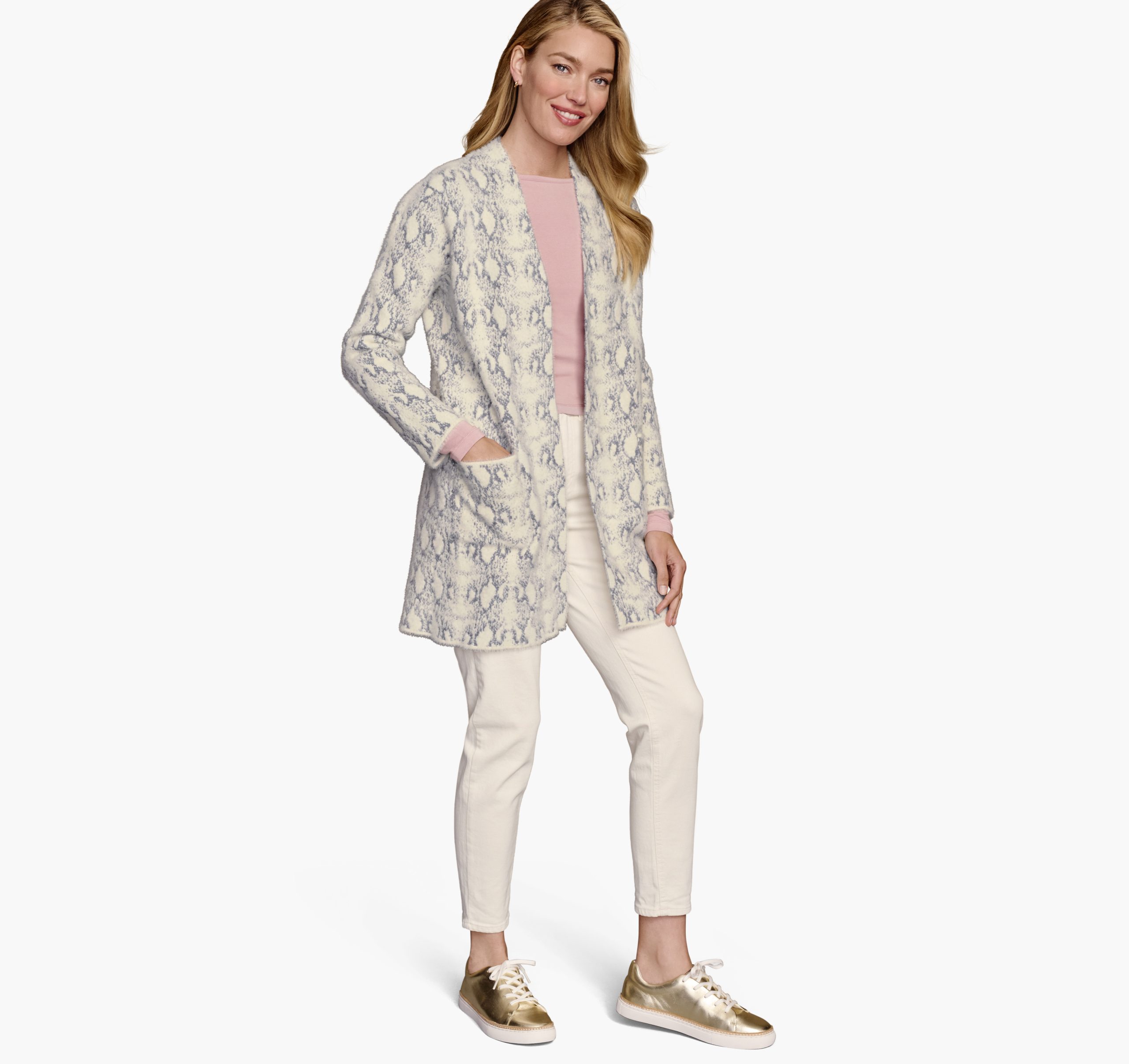 Johnston & Murphy Snakeskin-Pattern Cardigan Light Gray | Womens Shirts & Sweaters