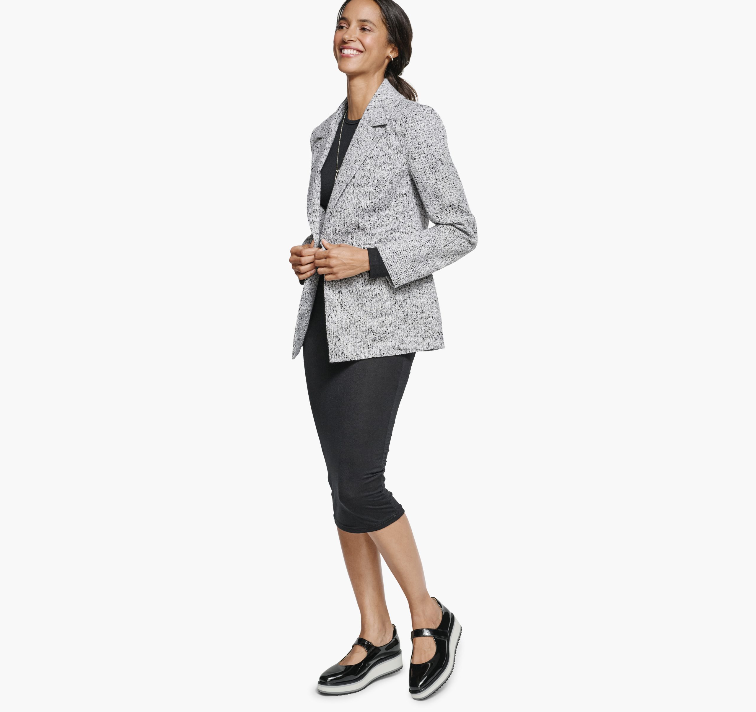 Johnston & Murphy Tweed Blazer with Removable Hooded Bib Black/White | Womens Blazers & Pants