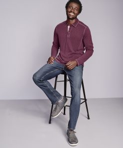 Johnston & Murphy Vintage Slub Long-Sleeve Polo Burgundy | Mens Polos & Tees