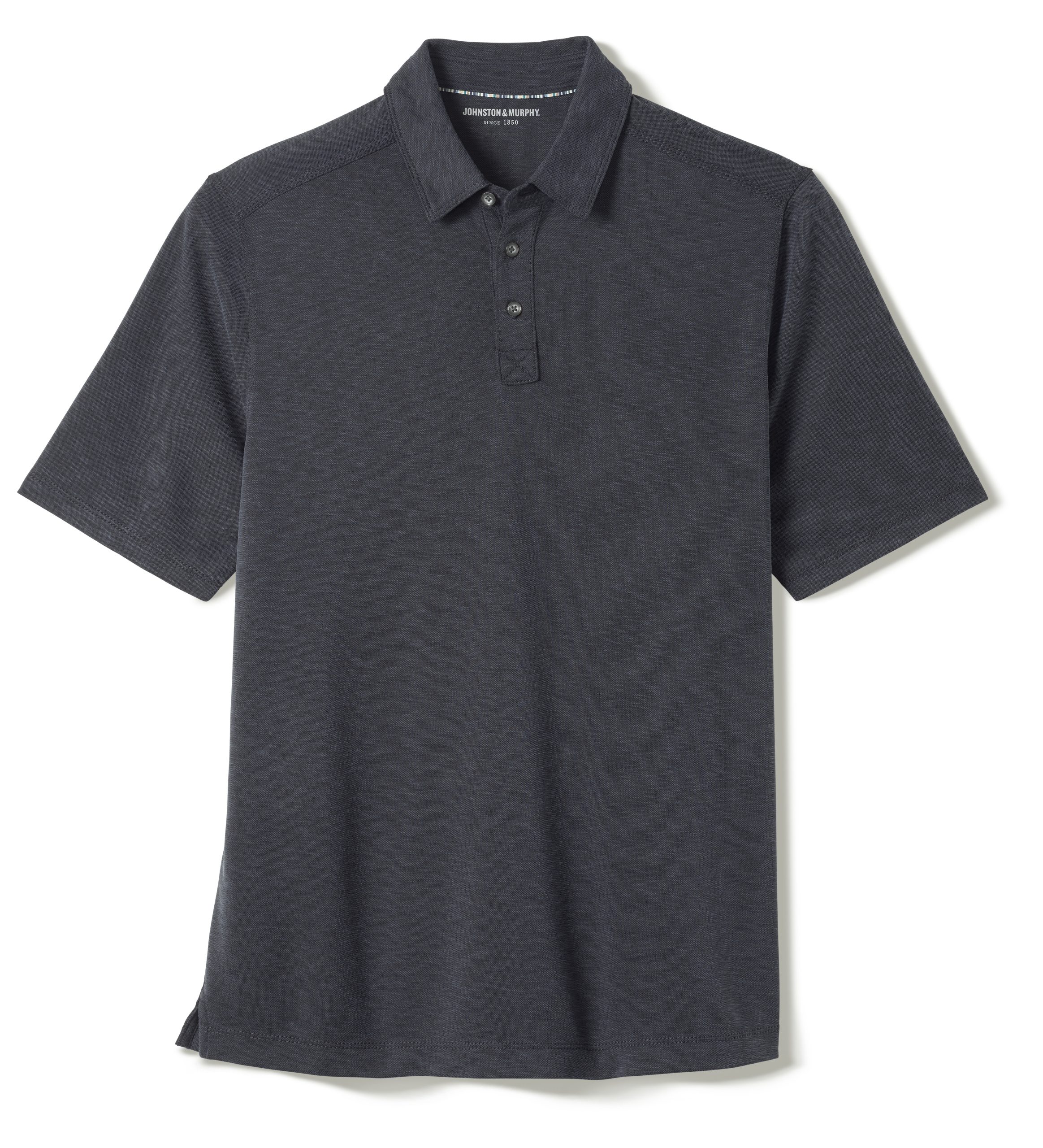 Johnston & Murphy Vintage Slub Polo Black | Mens Short-Sleeve Shirts