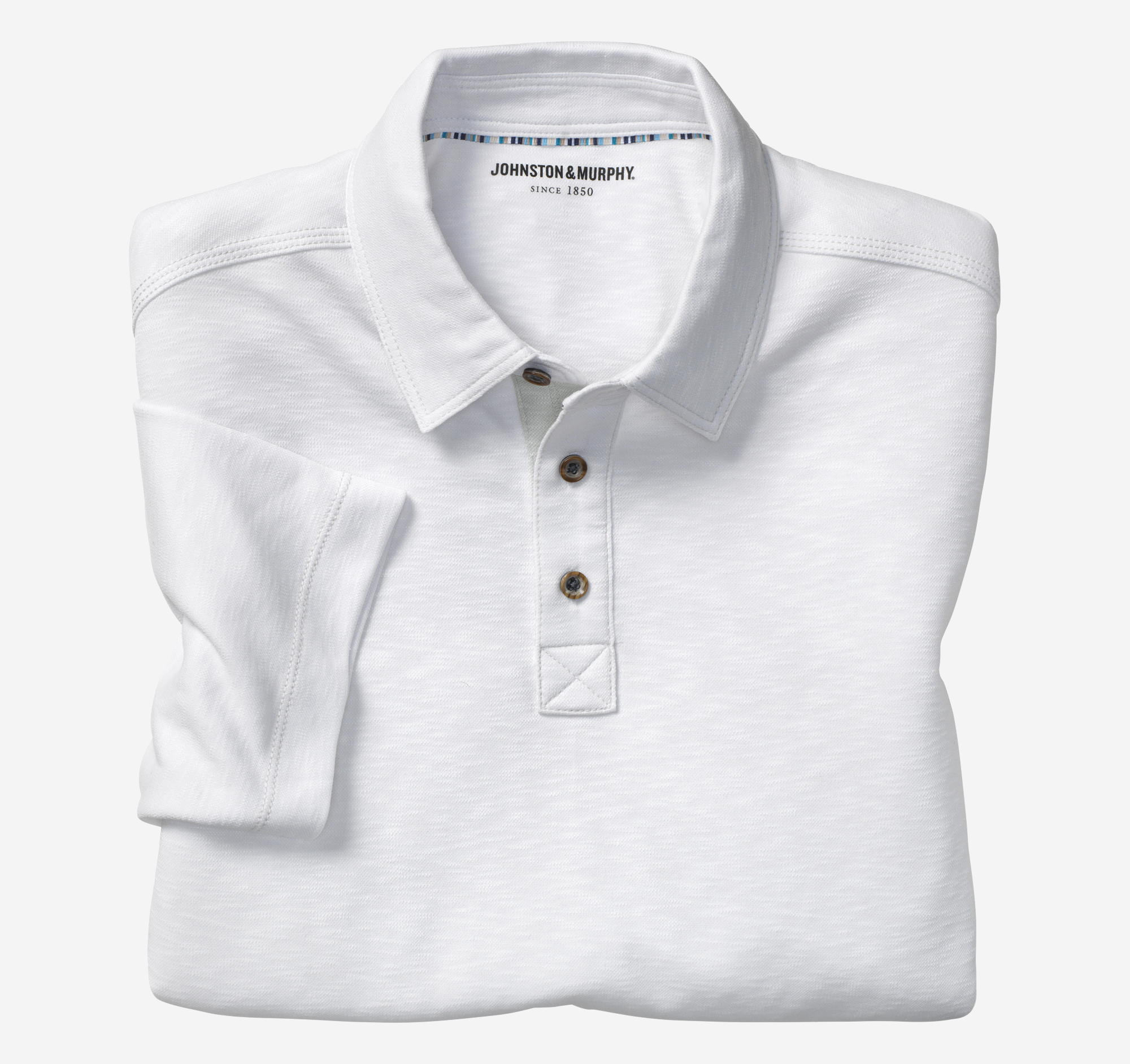 Johnston & Murphy Vintage Slub Polo White | Mens Short-Sleeve Shirts
