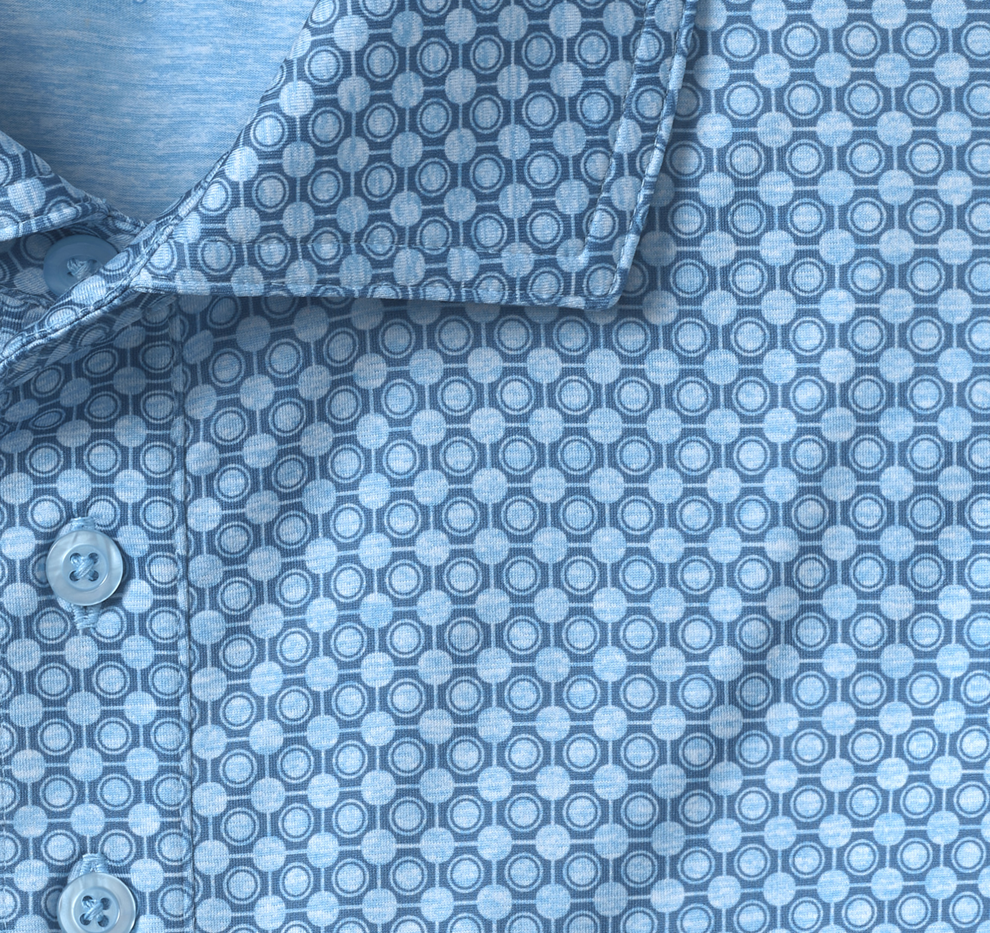 Johnston & Murphy XC4® Performance Print Polos + Cool Degree™ Blue Geo Circle | Mens Short-Sleeve Shirts